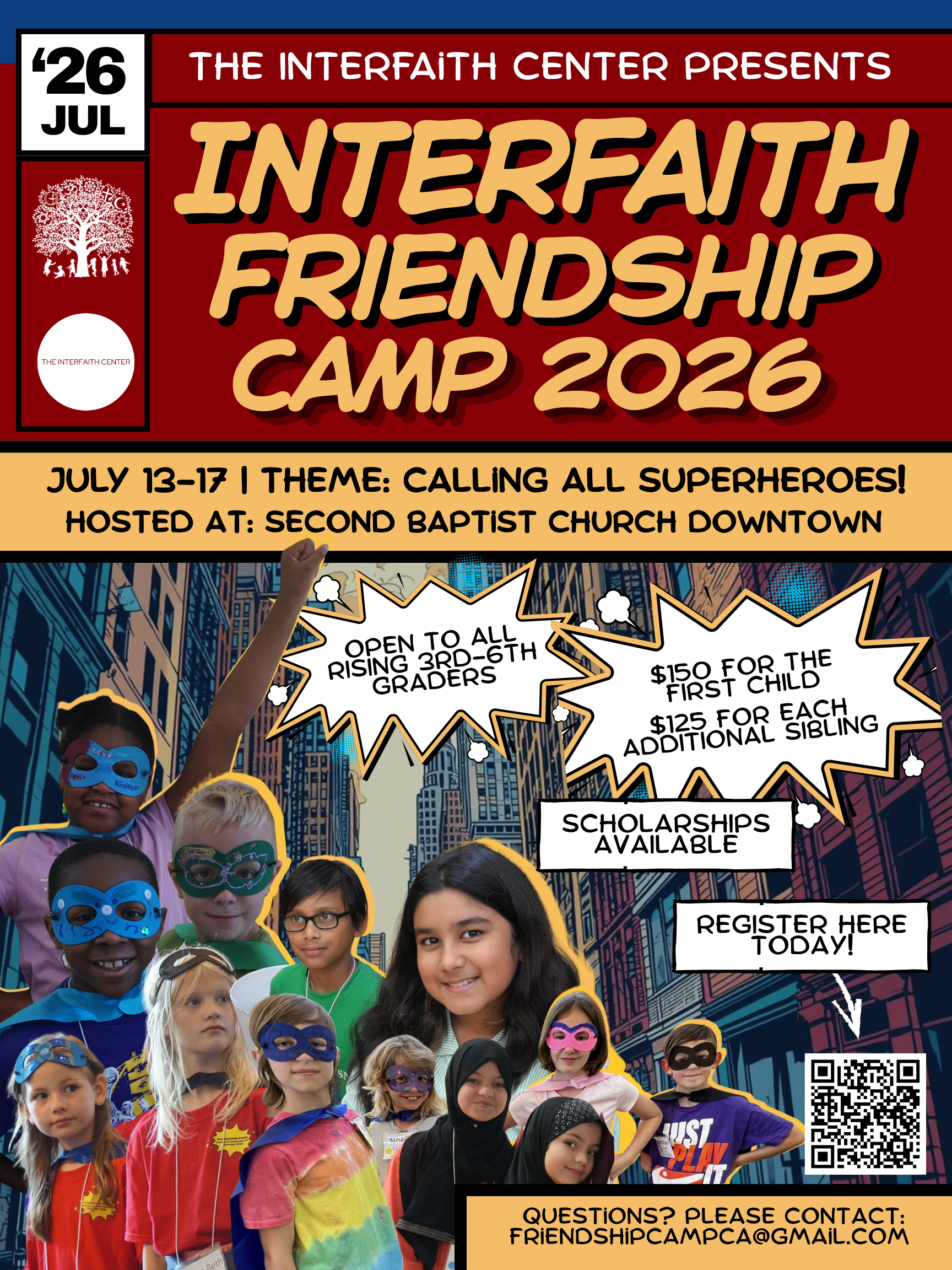 Activities: This year’s theme is “Calling All Superheroes!” Join us as we explore different religions by learning about the “superheroes” (important people, past and present) in several faiths, and then discover the superhero within you as we work together to make the world a better place.
